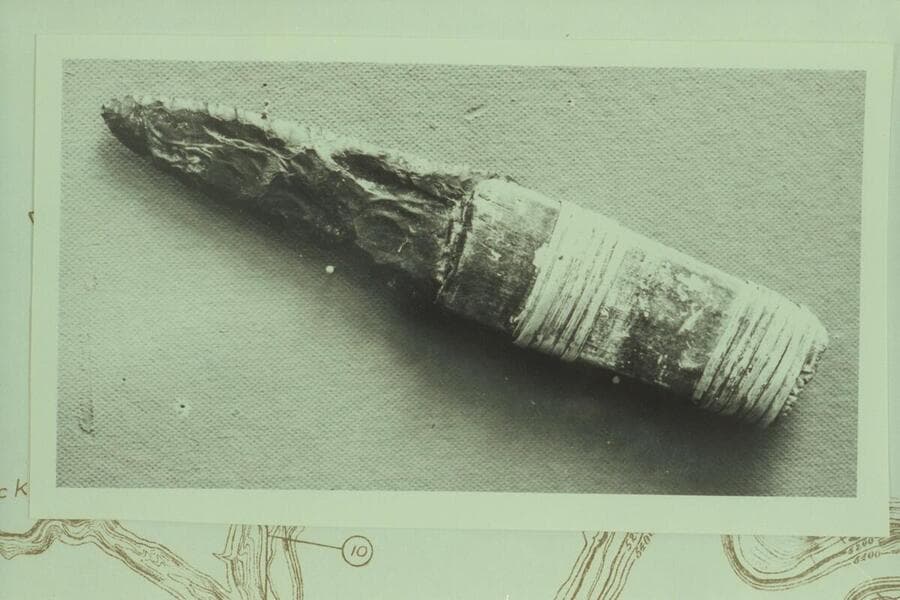 Obsidian knife from Yampa Canyon cave typical of artifacts found in Mantle Cave. University of Colorado Museum, Boulder, Colorado