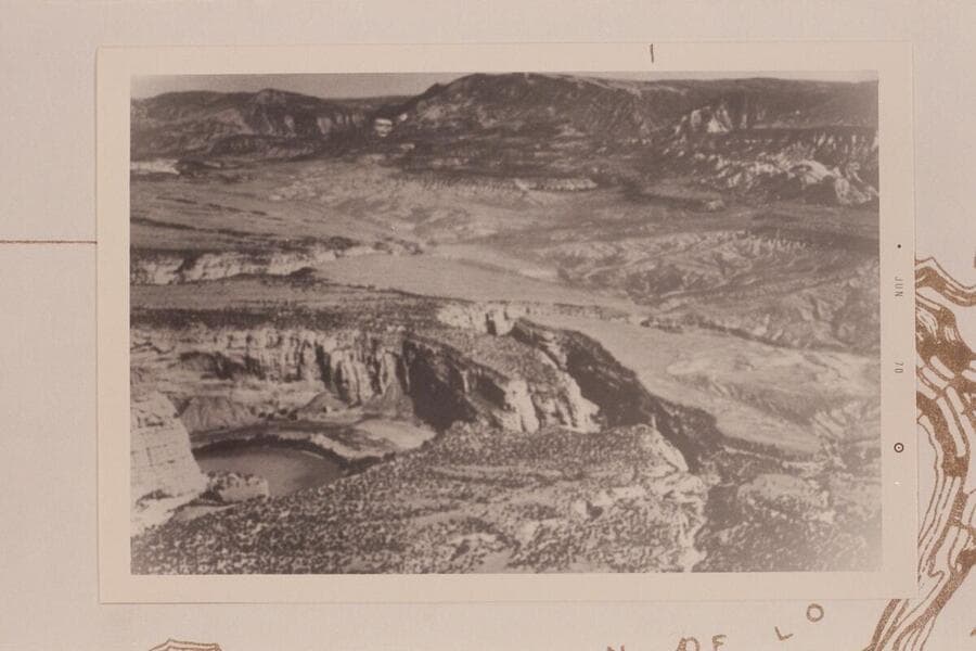 Steamboat Rock at lower left margin. Pats Hole to right of it. Pool Creek lower center. Sand Canyon middle left