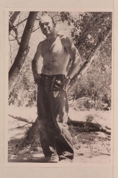 Buzz Holmstrom examines the "Wen" at Pats Hole. Buzz does not approve of the design