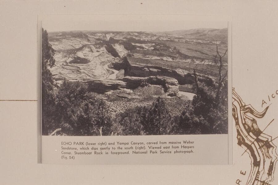 Echo Park and The Blade or Steamboat Rock. East from Harper's Corner
