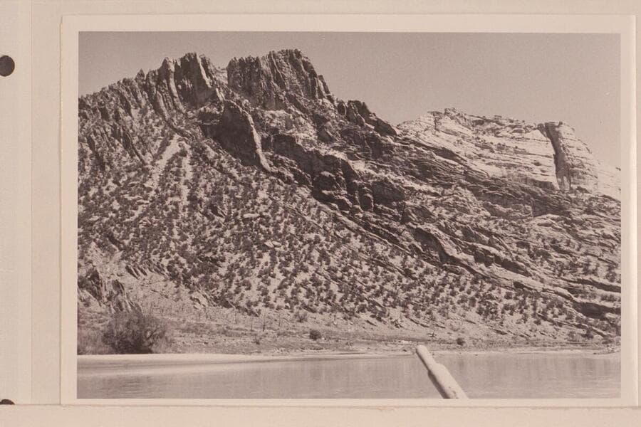 Up-ended strata at head of Whirlpool Canyon; left bank. Mile 223