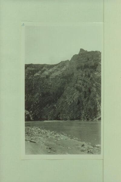 Looking upstream into the mouth of Whirlpool Canyon from Island Park. The USGS party left Bishop's Crek 1922, Aug. 09, where they camped just out of the mouth of Whirlpool Canyon on the right bank