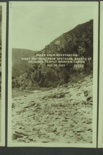 Green River Investigation: Right Abutment from Downstream, Damsite at Entrance to Split Mountain Canyon