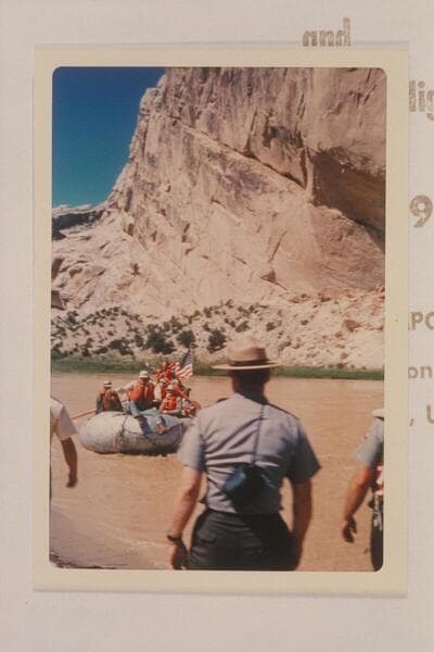 Baloney load of brass arriving in a Currey rig at foot of Split Mountain after a ride through the gorge