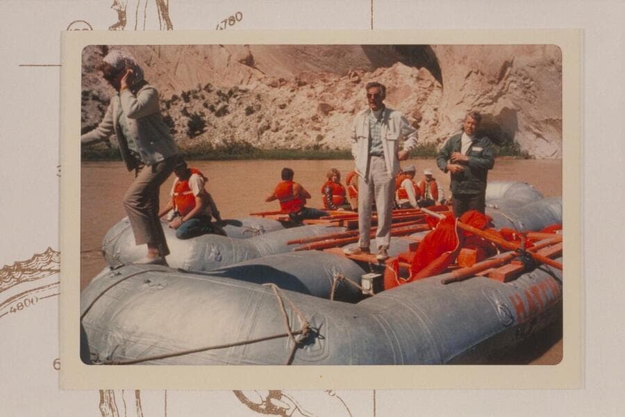 Baloney load of brass arriving in a Currey rig at foot of Split Mountain after a ride through the gorge