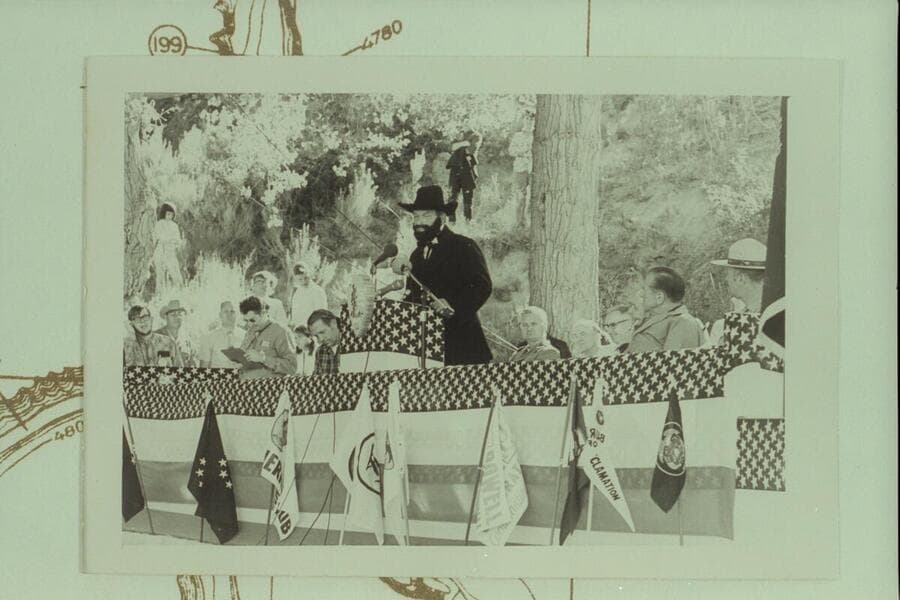 Martin Litton in the role of Powell at the Centennial ceremony at the foot of Split Mountain