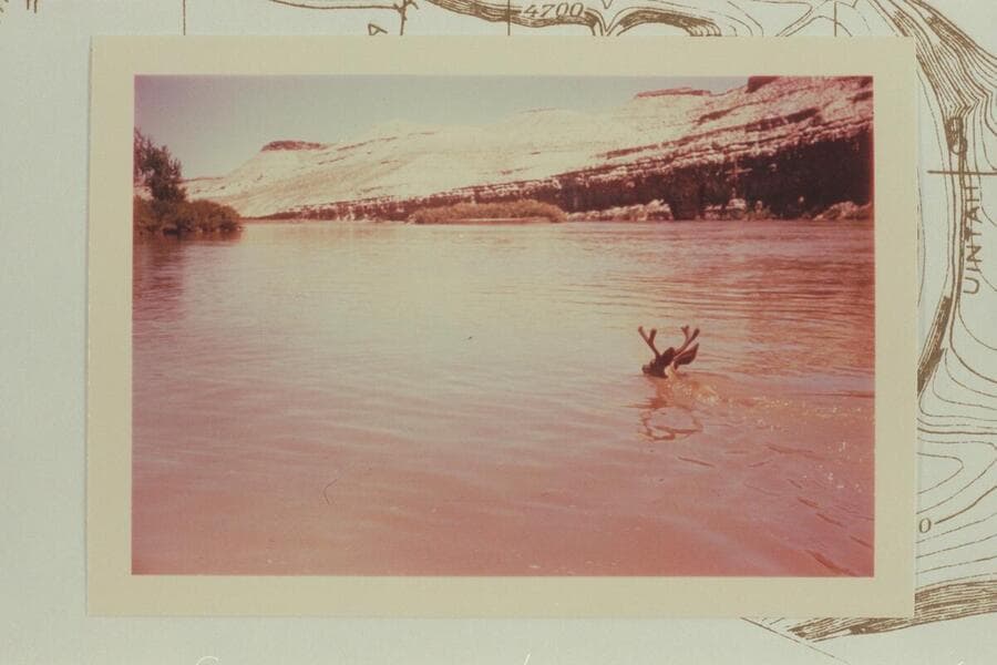 Deer swimming in the Green River in Desolation Canyon. Mile 95 1/2