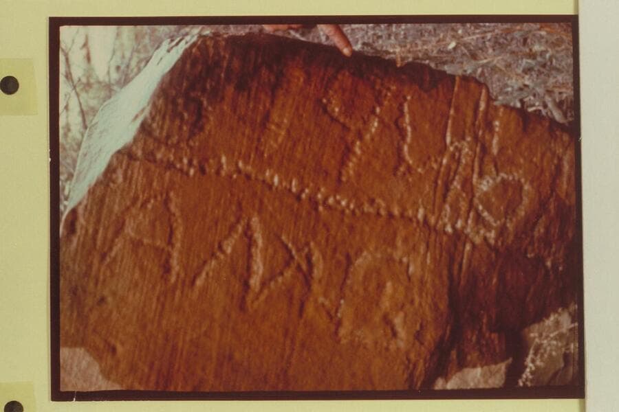 Jame rock in Minnie Maud Creek, right bank. Mouth of Dry Canyon