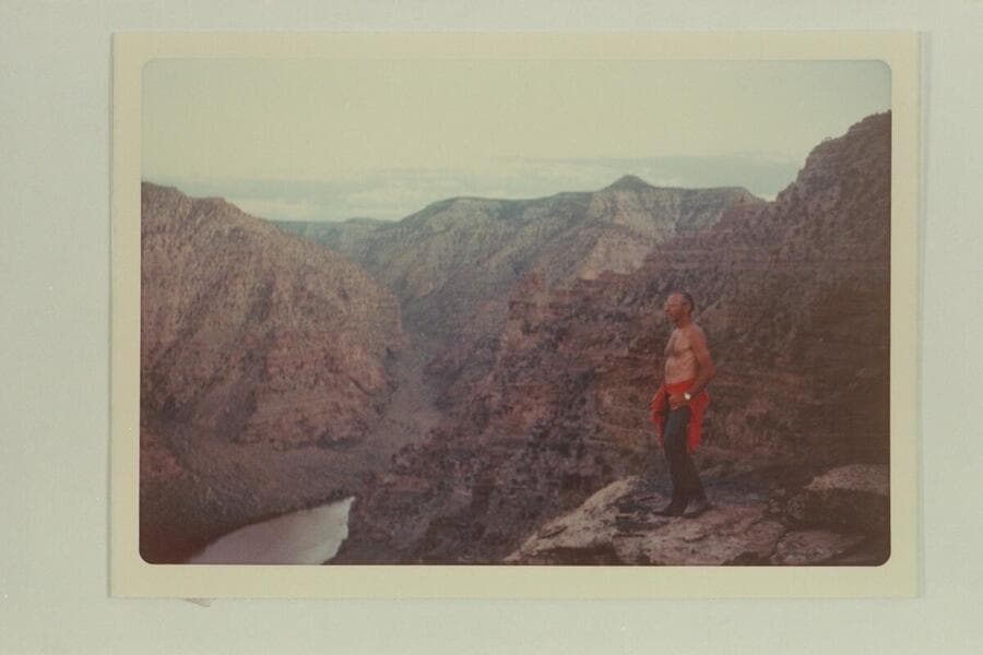 Jorgen Visbak on cliff at Mile 66.7 right bank, in Desolation Canyon