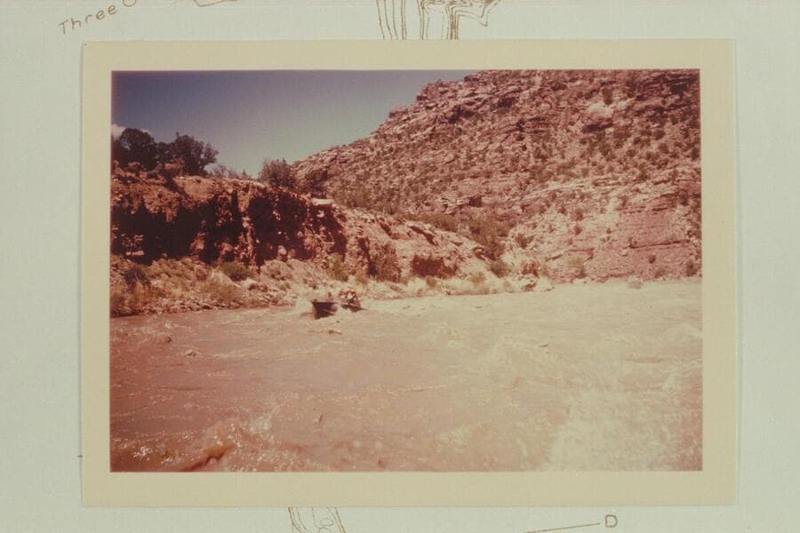 The Powell boats moored at right bank below Chandler Falls, Mile 47