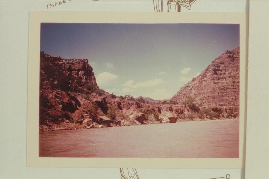 The Powell boats moored at right bank below Chandler Falls, Mile 47
