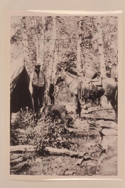 A. P. Ballard and his indian mule Zang; one of the brothers