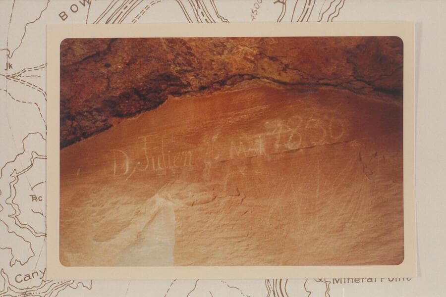 D. Julien's inscription at Mile 72.6 in Labyrinth Canyon on the left bank, Green RiVer