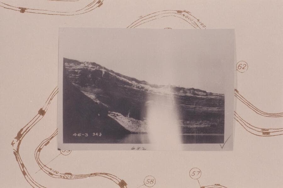 Down Spring Canyon to the big Bowknot showing the Saddle at upper left and the little Bowknot upper center