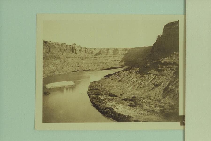 Downriver from the Saddle into the lower loop of Bowknot Bend. Easton, Leeds, Wheeler cruise on the "Paddy Ross."