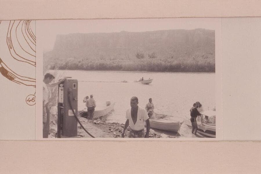 Boats lined up for gas at Mineral Canyon; Mile 50.7. Friendship Cruise