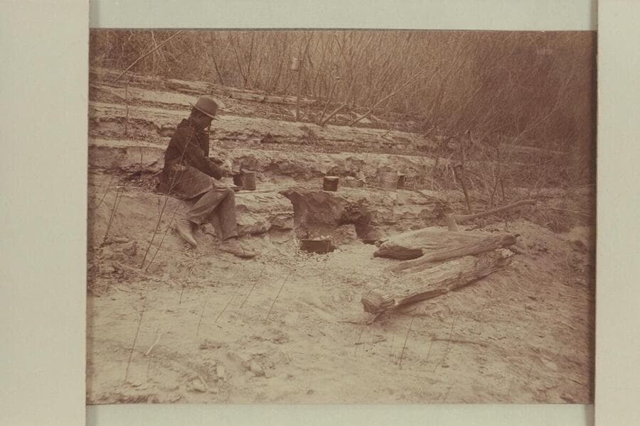 Camp during boat trip from Greenriver, Utah, to the Junction and return. Probably Arthur G. McCormick in the photo
