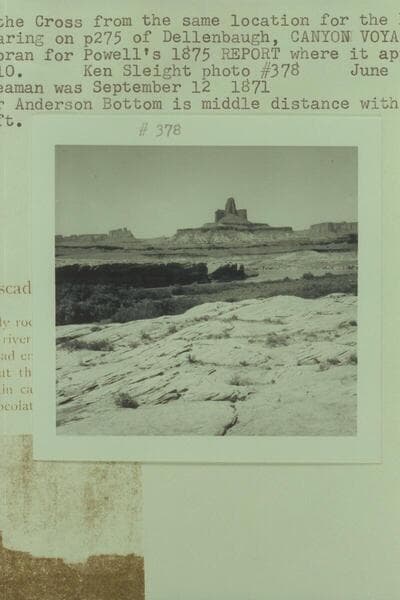 Gas station at Townsite or Anderson Bottom. One of the Buttes of the Cross at upper left