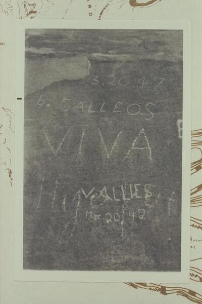 Inscription in cave of White Rim Formation at lower end of Beaver Bottom