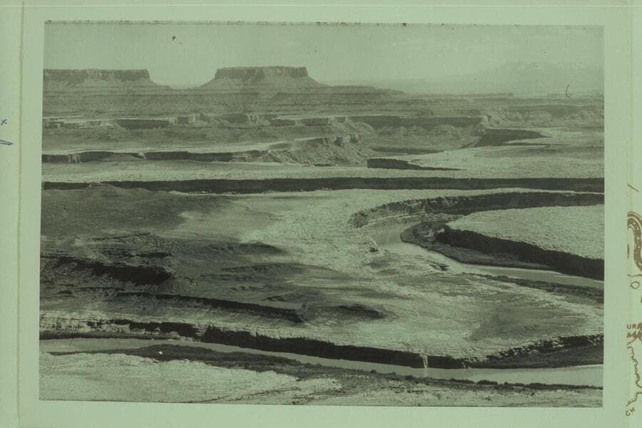 Buttes of the Cross. Townsite or Anderson Bottom is middle distance with Bonita Bend at left