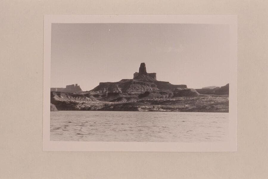 The Buttes of the Cross from about Mile 34 1/2 in Labyrinth Canyon when the Nevills party was using a small outboard in the very slow stretch of river