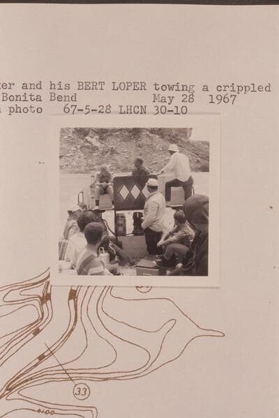 Joe Baker's "Bert Loper" towing a crippled cruiser from Bonita Bend to Mineral Canyon at the lower side of Fort Bottom