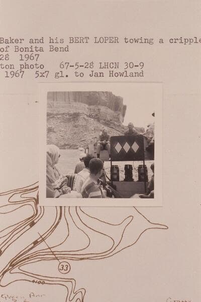 Joe Baker's "Bert Loper" towing a crippled cruiser from Bonita Bend to Mineral Canyon at the lower side of Fort Bottom