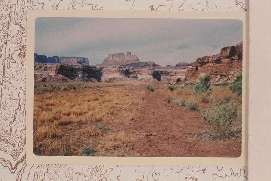 Buttes of the Cross. Townsite or Anderson Bottom is middle distance with Bonita Bend at left