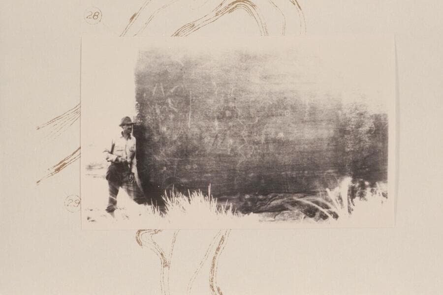 Detail of inscription on rocks at foot of talus at Mile 22 3/4 right bank in Stillwater Canyon