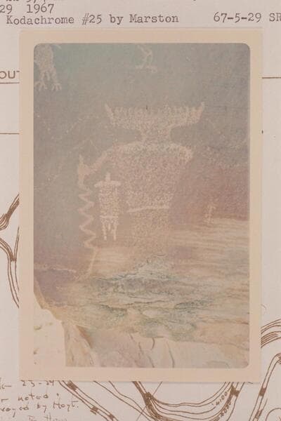 Detail of pictograph on the up river of two boulders at foot of talus below the White Rim; Mile 22 3/4 right bank, Stillwater Canyon