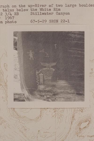 Detail of pictograph on the up river of two boulders at foot of talus below the White Rim; Mile 22 3/4 right bank, Stillwater Canyon