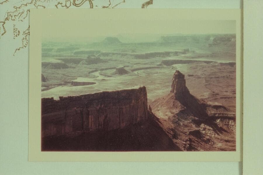 Southwest down Stillwater Canyon from Candlestick Tower. The Turks Head is left of center. Deadhorse Canyon is right of center. Back of the un-named butte at upper left is Elaterite Butte