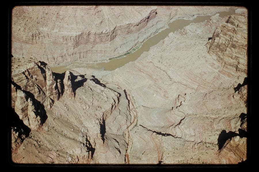 Mouth of Dark Canyon. The foreground shows a flood out of Dark Canyon