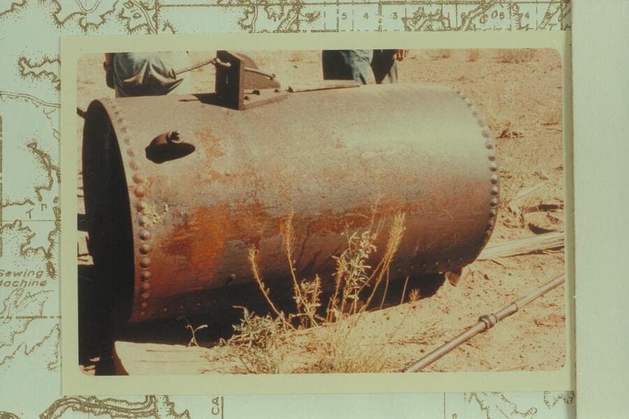 The boiler from the Keystone Driller taken into Elaterite Basin by Wolverton with the help of the Chaffins