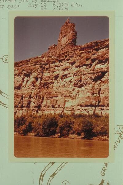 Prehistoric inscriptions on boulder at foot of talus below the White Rim; Mile 22 3/4, right bank