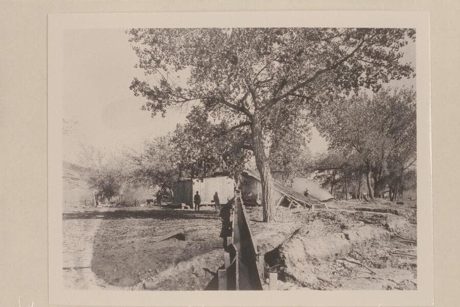 Works and camp of the Portland Dredging Co.'s works. San Juan River, Utah