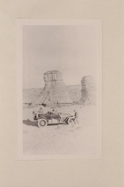 "Oscar Zahn's Palace." The Zahn party and their Franklin car en route from Kayenta to the Zahn Mine on the San Juan River
