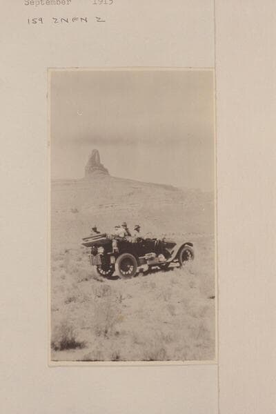 The Zahn party and their Franklin car at El Capitan en route from Los Angeles to the Zahn Mine on the San Juan River in 1915, Sep