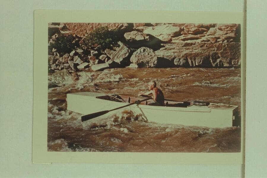 Jack Frost. Government Rapid. First Frost San Juan trip. Running the rapid for pix. The same rocks and brush appear in the Brandenburg photo of 1945, June 15
