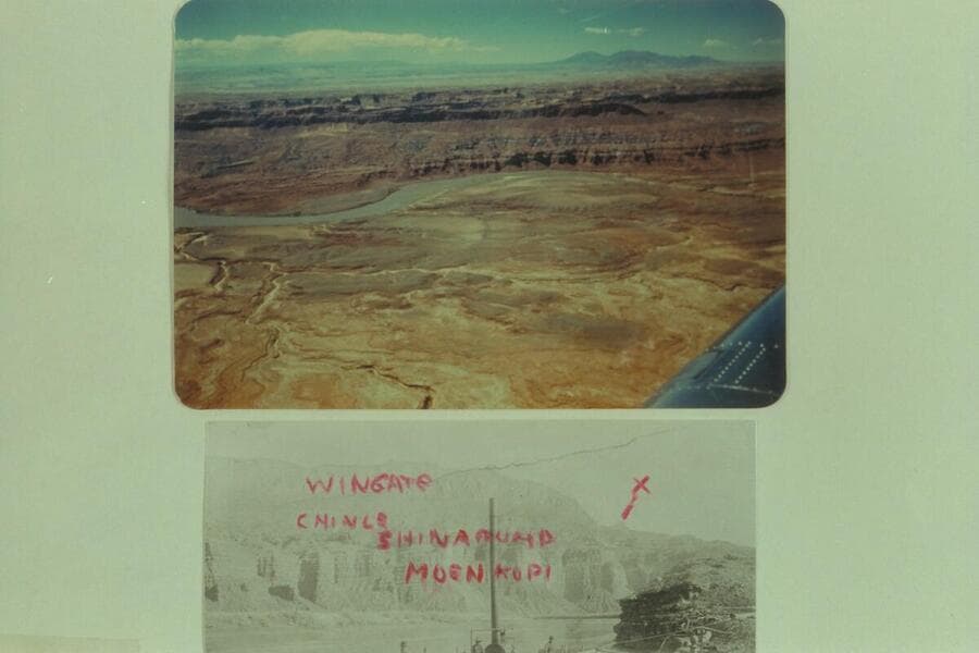 Looking south over flat country between Spencers and Piute. Piute Creek is upper center right below end of Navajo Mountain