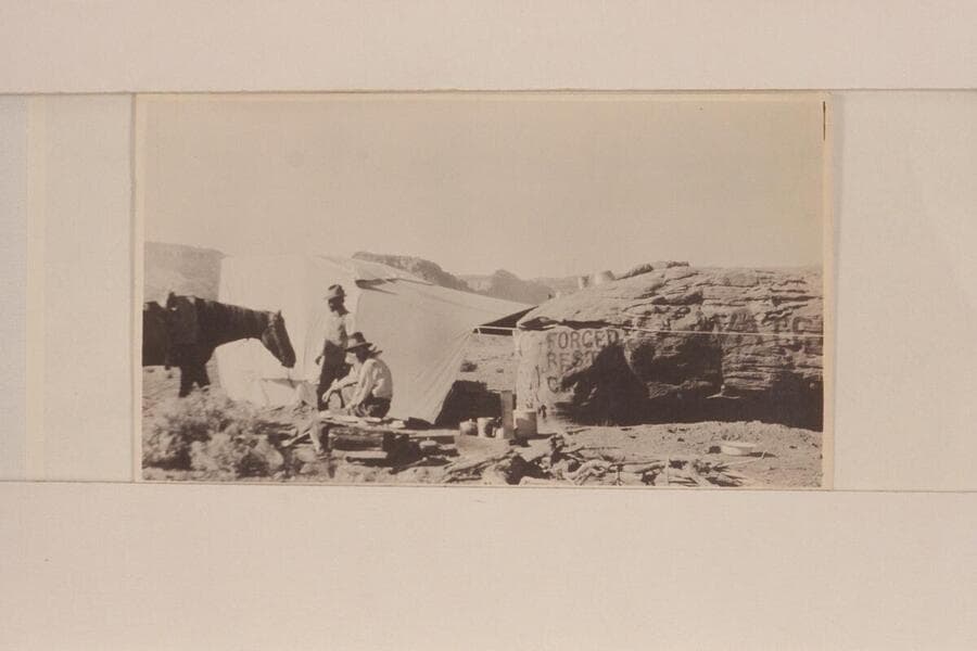 Otto Zahn's arrival at "Forced Rest Camp" with the horses. The Zahn party which took a Franklin car to the Zahn Mine on the San Juan River