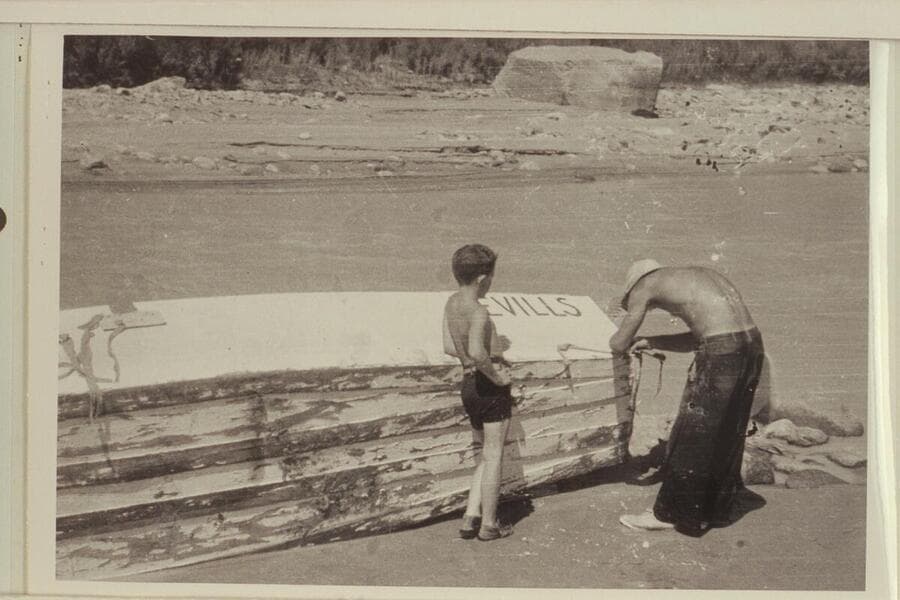 Kent Frost watches Norm Nevills in his early rock-dodging on the San Juan River in 1938