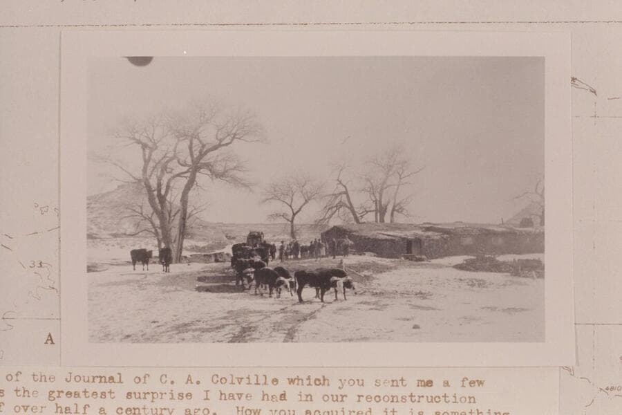 Spencer ox team pulling out of the Wetherill trading post at Oljeto in the winter of 1909-1910
