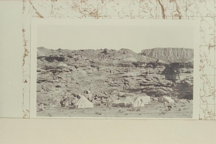 Temporary camp in Nokai Canyon while road to Camp Ibex was under construction
