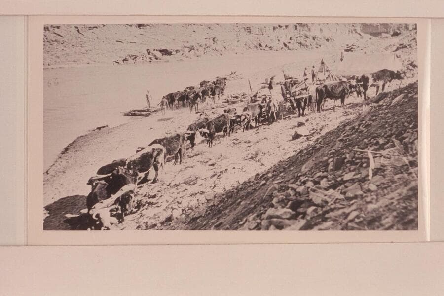 Chas. Spencer's ox team at San Juan River placer operation. Spencer's camp, Mile 38