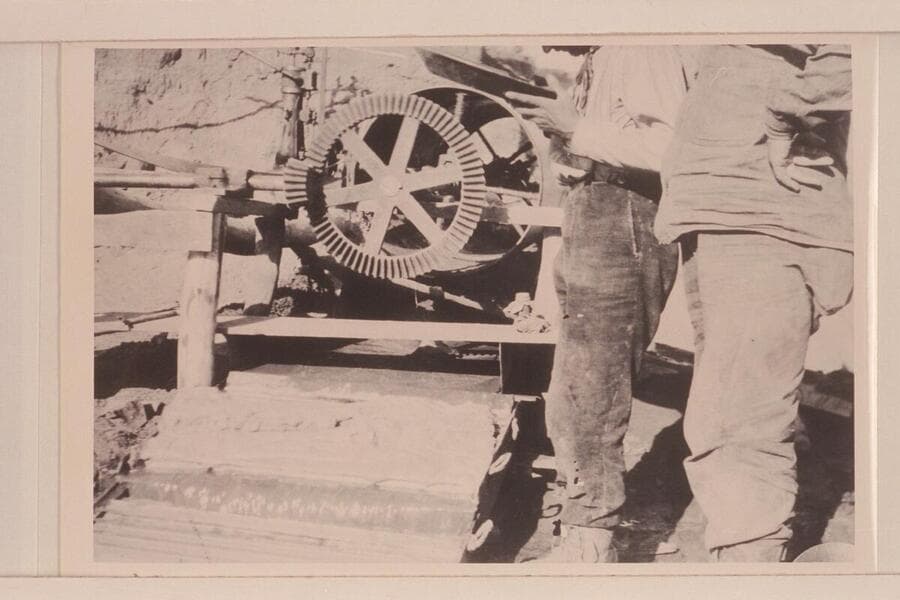 Chas. Spencer's ox team at San Juan River placer operation. Spencer's camp, Mile 38