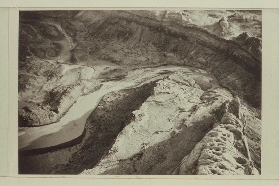 Hyde and Indian squaw, both smiling. Camp at mouth of Piute. USGS San Juan survey