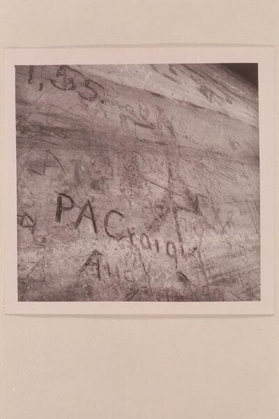 The name of P.A. Craig and the date Aug. 4, 1892 cut deeply into the wall at TSE AH TOH. Above the deep cutting is another cut of his name