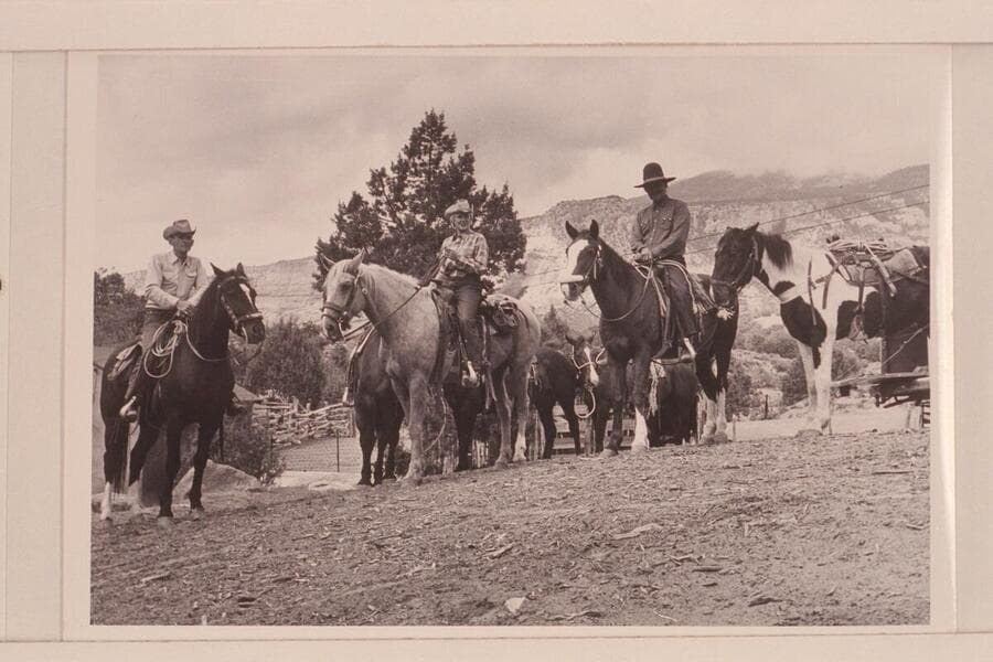 Tom Daly, Nancy Daly and Buck Whitehat about to leave the Navajo Mt. Trading Post with the stock