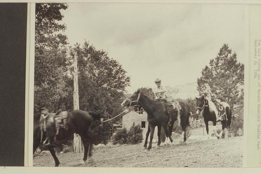Tom Daly riding out of Navajo Mountain Trading Post